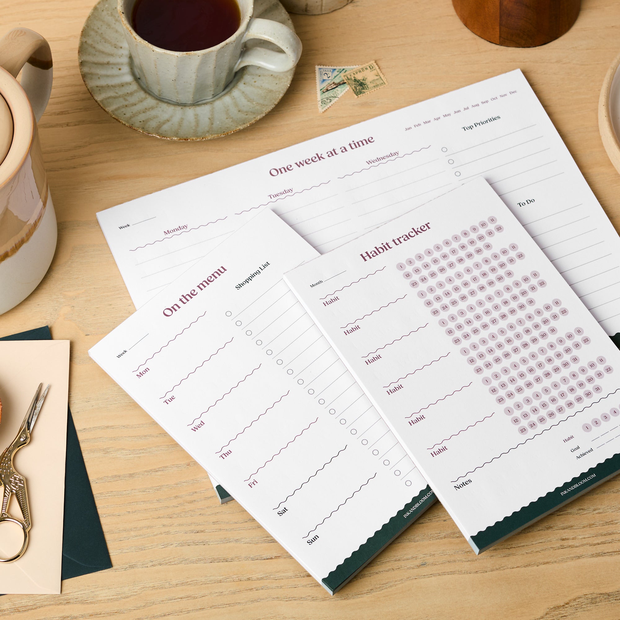 Bundle - Weekly Desk Planner Pad & Layflat Notebook in Floral Tan